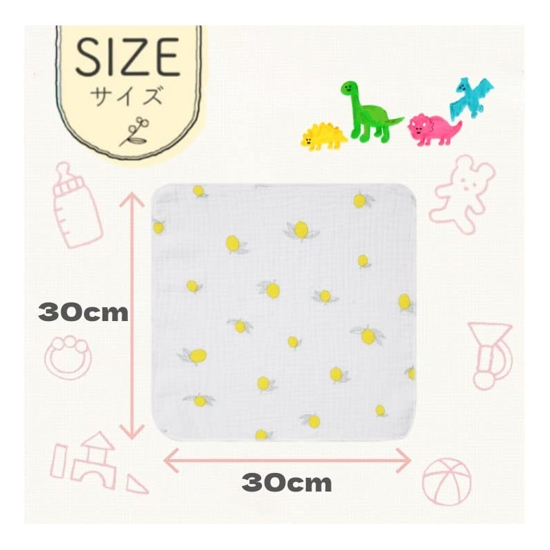 Gauze Handkerchief, Baby Gauze Handkerchief, Bib, 100% Cotton, Double Layered Gauze, Set of 12, 11.8 x 11.8 inches (30 x 30 cm), Thin, Quick Drying, For Babies, Newborns, Girls, Boys, Nursery Schools,