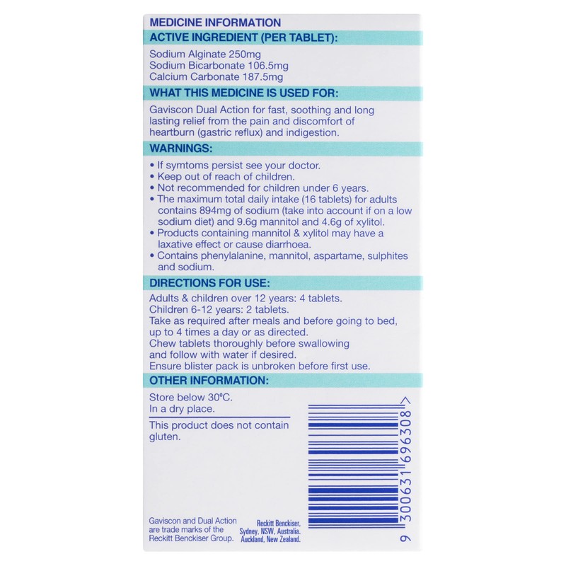 Gaviscon Dual Action Heartburn and Indigestion Relief Mixed Berry Tablets 16 Pack