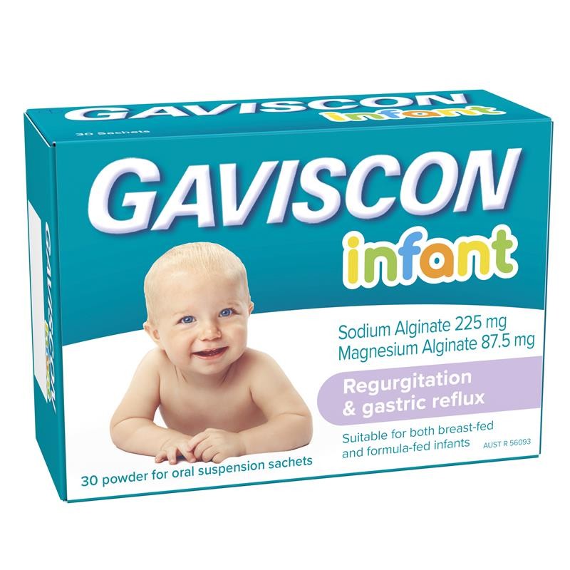 Gaviscon Infant Powder for Oral Suspension mixes with and stabilises the stomach contents to prevent reflux and regurgitation. This Infant Powder is specially designed for little tummies and comes in convenient sachets for easy dose control. The regurgitation and reflux powder thickens stomach contents to make it harder for liquid to come up the food pipe, reducing the number of times a baby brings up milk by nearly two thirds.