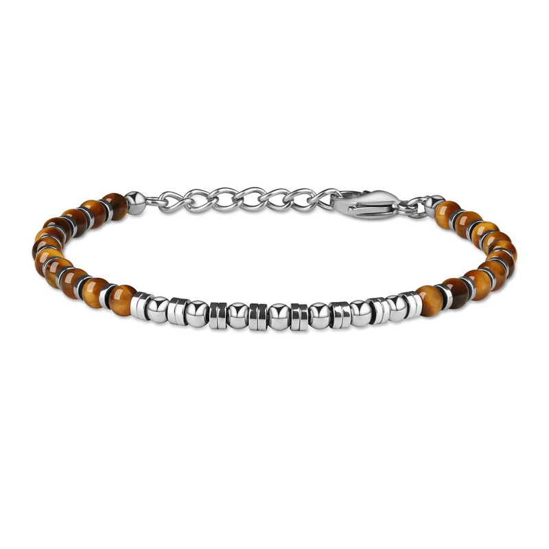 - This crystal bracelet for men is in simple design that beaded with 4mm stainless steel beads & brown tiger eye beads, decorated with 4*1mm Hematite spacer beads