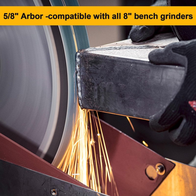 - 【Suitable Size】Engineered with an 8-inch diameter and 5/8-inch bore for universal bench grinder compatibility. As a high-performance abrasive, CBN grinding wheel 8-inch has high compressive strength, generates less heat and good abrasive shape retention long service life