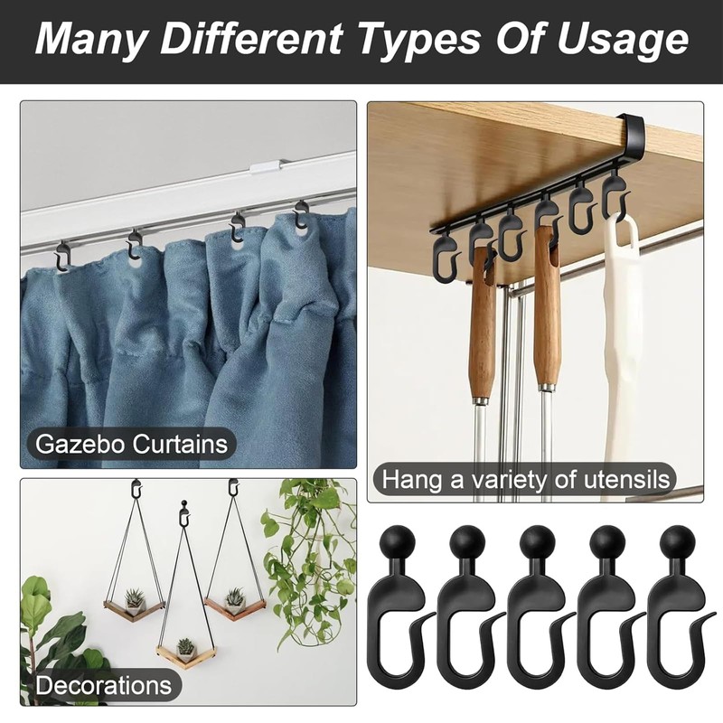 - 【Ample Quantity for Outdoor Gazebos】: Includes 50PCS black gazebo curtain hooks, offering enough quantity for full installation and replacements. Ideal for outdoor curtains for gazebo, canopy setups, and patio mosquito netting.
