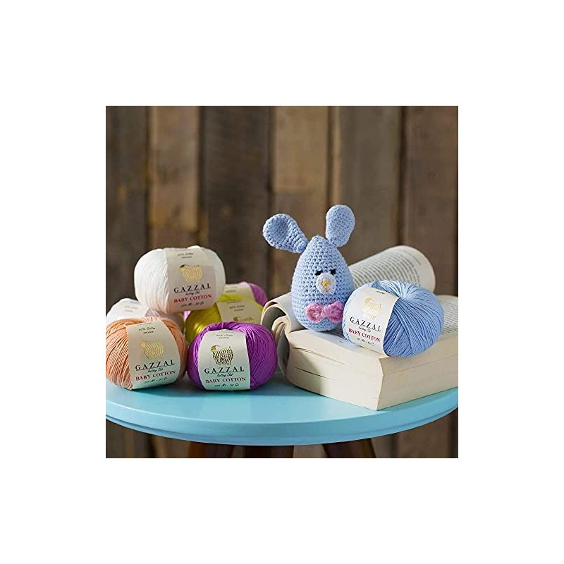 - SUPER SOFT BABY YARN Gazzal Baby Cotton Knitting Yarn contains a great blend of 60% cotton and 40% premium acrylic to be used in all types of baby clothing projects without a doubt. Gazzal Baby's normal thickness allows knitting with needles and hooks. Ideal for unique baby clothing designs.