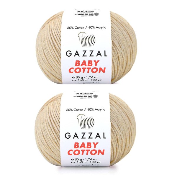Gazzal Baby Cotton 60% Cotton 40% Acrylic 2 Balls (50g Ball) 165m Soft 2 - Fine Baby Yarn (3445 Beige)