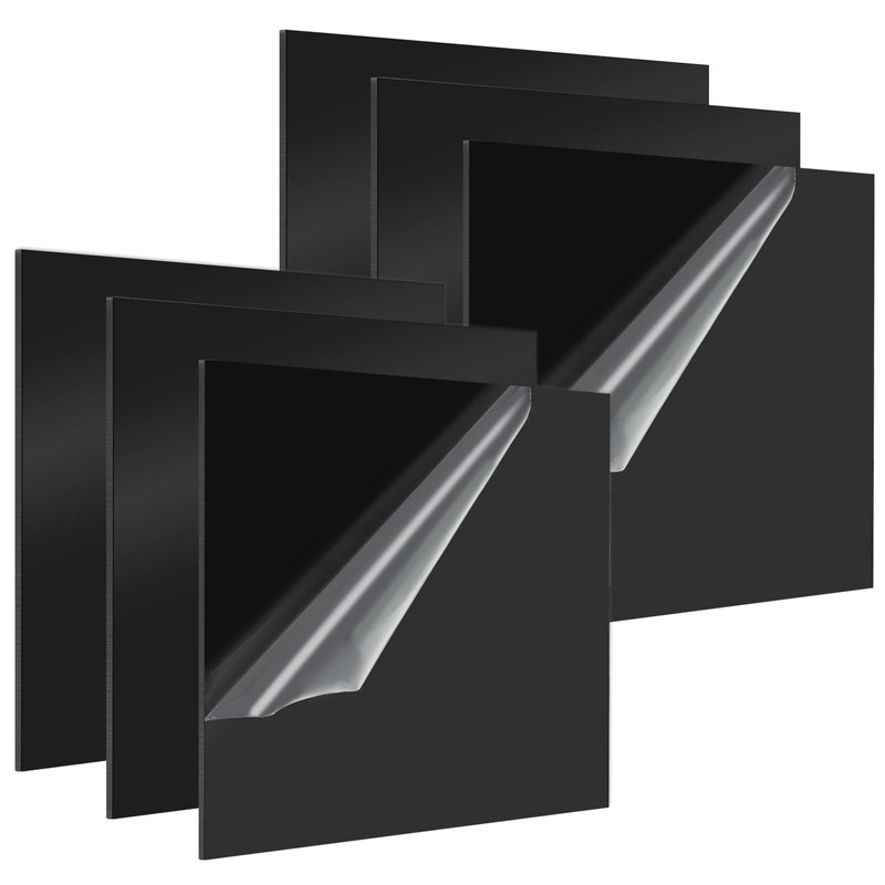 GBACHOOSE 6 Pcs Black Acrylic Sheets, 3mm Black Gloss Acrylic Plastic Sheet, Square Acrylic Sheet Signs for Sign, DIY Craft, Display (200x 200mm)