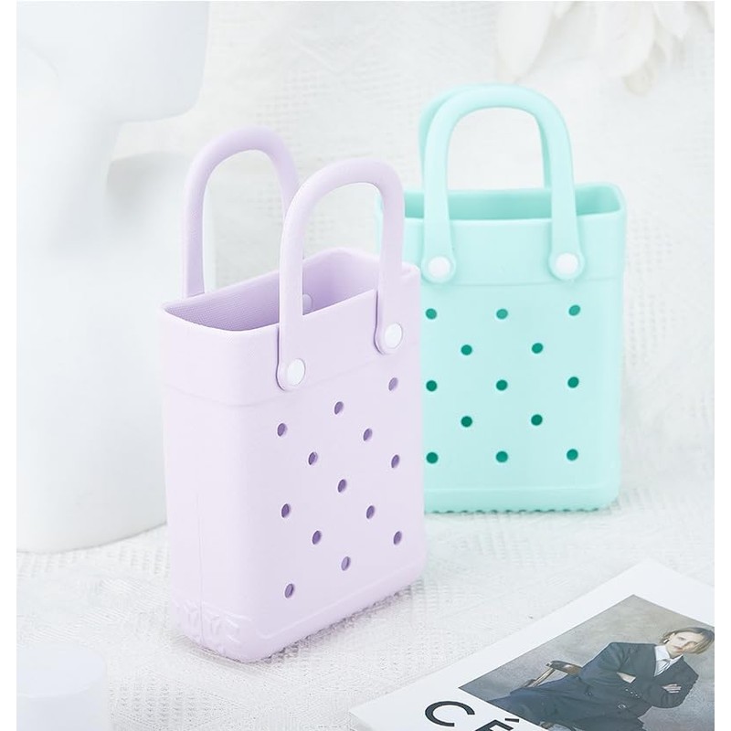 - 【Small Size Outdoor Tote Bags】:This rubber beach bag is made of high quality durable EVA material. Soft shoulder strap for easy travel carry.The beach bag measures 6.7*8.2*3.1inch/ 17*21*8cm.