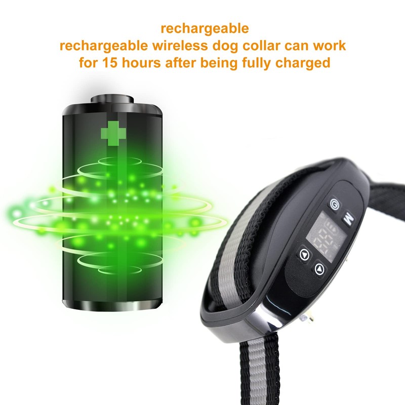 - 【100% WATERPROOF & RECHARGEDABLE COLLAR】: The Electric Dog Fence System collar receiver is built-in 250mAh rechargeable lithium-ion battery, can provide itself with 10-15 days of use between recharges. The IPX6 waterproof rating of the collar allow your dog to swim in the river and play in the rain, great for outdoor use.And The Collars Suitable for Extra-large, Large, Medium and Small Breed Dog,Additional two Reflective stripe Collars,Provide replacement use