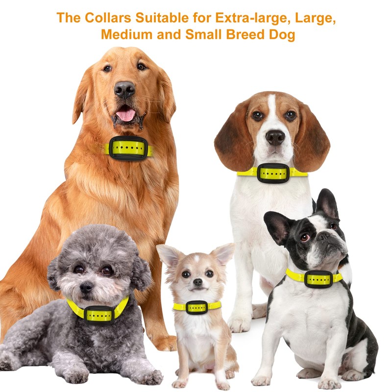 - 【100% WATERPROOF & RECHARGEDABLE COLLAR】: The Electric Dog Fence System collar receiver is built-in 250mAh rechargeable lithium-ion battery, can provide itself with 10-15 days of use between recharges. The IPX6 waterproof rating of the collar allow your dog to swim in the river and play in the rain, great for outdoor use.And The Collars Suitable for Extra-large, Large, Medium and Small Breed Dog,Additional two Reflective stripe Collars,Provide replacement use