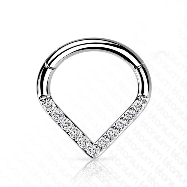 - Style: This chevron shapred hinged segment ring is a stunning piercing, suitable for just about any occasion. The gorgeuous chevron shape paved with CZ Gems really brings the piercing to life, complimenting any look. The hinged clasp makes inserting and removing the piercing much easier while keep it securely in place.