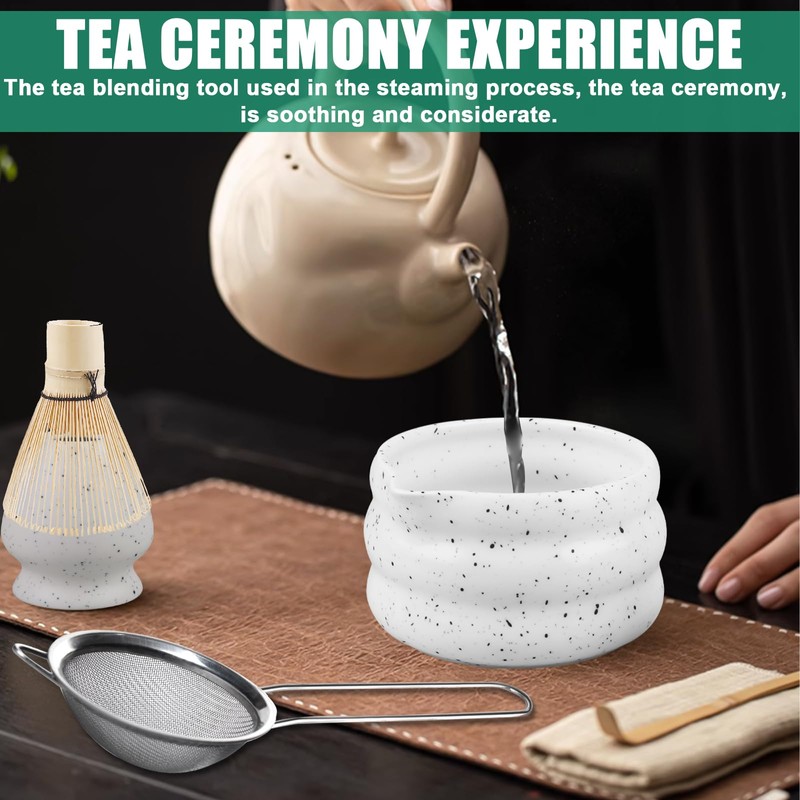 - PREMIUM MATCHA TEA SET - Everything for the perfect tea ceremony: our high quality matcha set includes everything you need for the traditional Japanese tea ceremony: a classy matcha bowl (chawan), a bamboo whisk (chasen), a matcha spoon (chashaku) and a handy strainer. Enjoy creamy, foamy matcha tea just like in Japan - simple and stylish