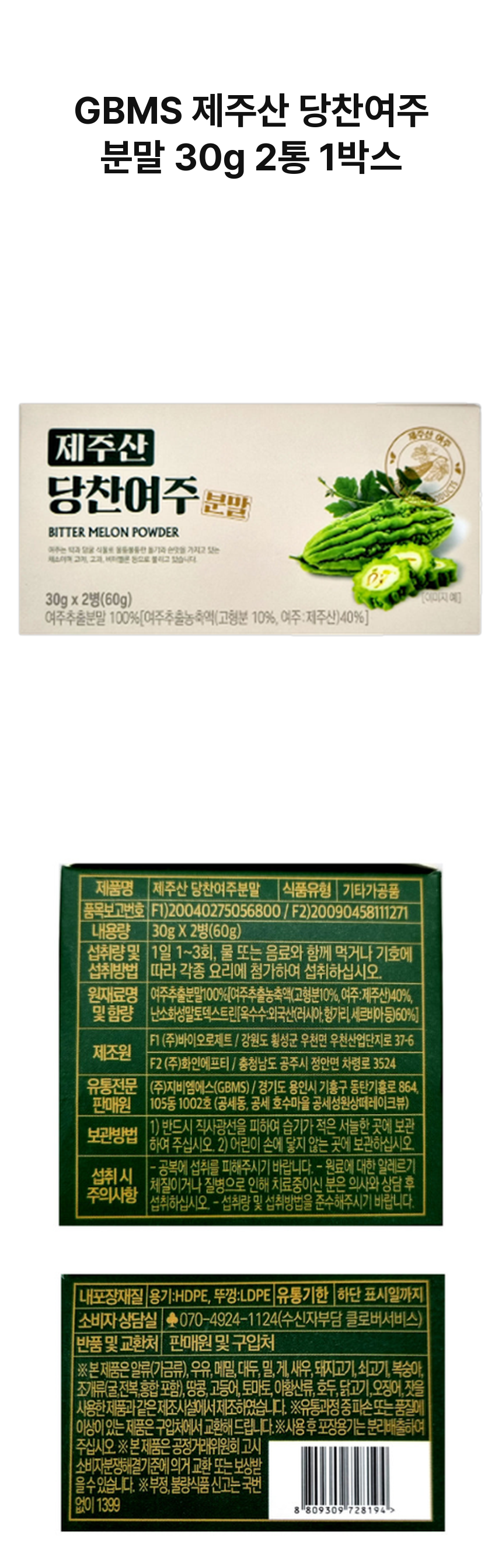 GBMS 제주산 당찬여주 분말 30g 2통 1박스 GBMS Jeju Island Bitter Melon Powder 30g 2 Bottles 1 Box
