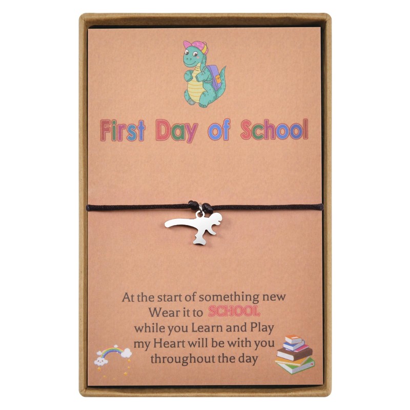 GBTBYS First Day of School Gifts, Back to School Kindergarten Preschool Grade Dinosaur Matching Wish Bracelet for Son/Daughter