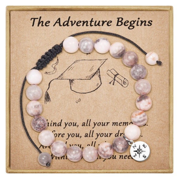 GBTBYS Graduation Gifts, Natural Stone Compass Bracelets, The Adventure Begins Graduate College High School Inspirational Gift for Women