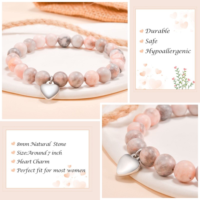 - 【Material & Size】Made of natural stones and stainless steel heart charm. Hypoallergenic, Lead-free, Nickel-free. Comfortable for daily wear.The bracelet is around 7inch, which is suitable for most women's wrists. The high-quality elastic rope is sturdy and makes you feel easy to put on and take off.