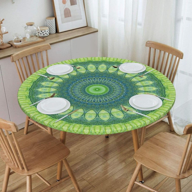 Gbuzozie Mandala Tablecloth with Elastic Edge, Round Table Cover Washable Reusable Boho Table Cloths for Kitchen Dining Party, Medium (Fits 45-50 in)