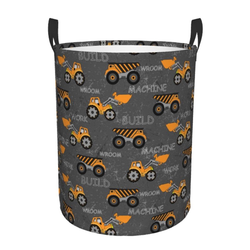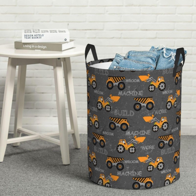 Gbuzozie Monster Trucks Excavator Tractor Round Laundry Hamper Storage Basket Toys Clothes Organizer Bin For Home Bathroom Bedroom Dorm Nursery, 62l