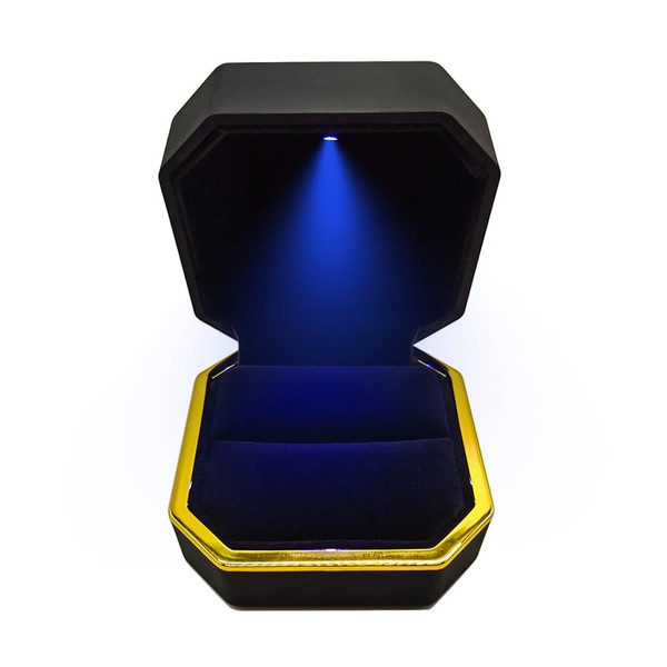 GBYAN Ring Box with LED Light Jewelry Display Gift Box for Proposal,Engagement, Wedding (black)