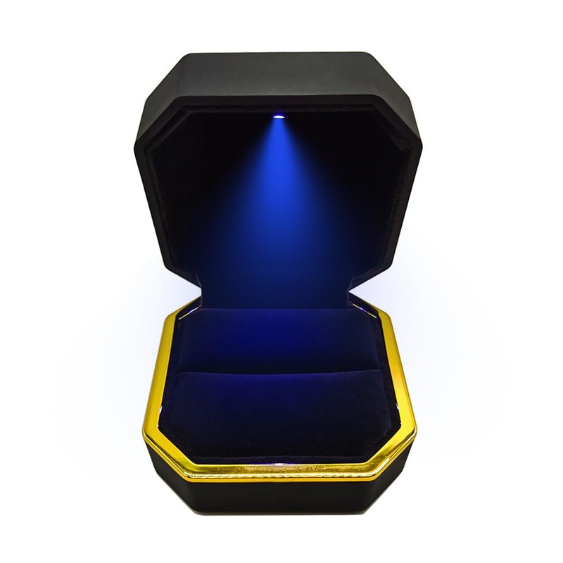 - LED light: The little light at the top shines as soon as you open the box,and shining light onto whatever item you put in.Shows off the sparkle in a ring,perfect for illuminating the diamond.