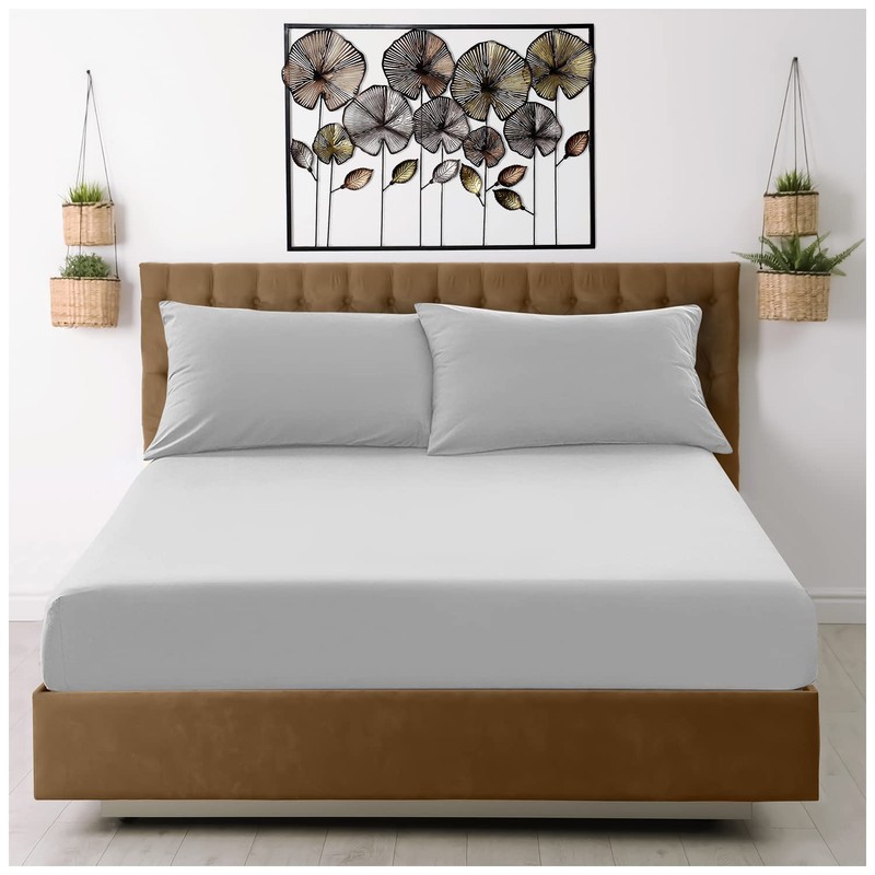 - SIZE & DIMENSIONS: Available in Double Fitted Sheet (137 x 193 Cm), this Silver Poly Cotton Fits Double Bed Sheets. Elasticated at the corners and so makes a comfy yet cosy feeling. Complete your decor elegance by purchasing the matching pillowcases separately.