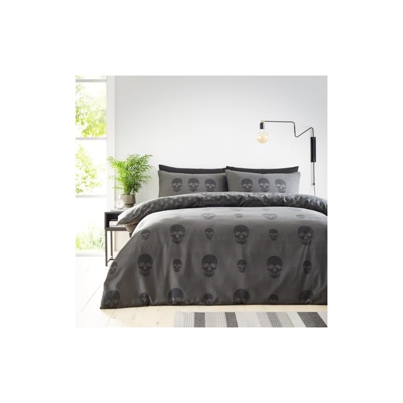 GC GAVENO CAVAILIA Skull Duvet Cover Set Single, Reversible Charcoal Bedding & Linen With Pillowcase, Skeleton Head Comforter Cover (135x200 cm)