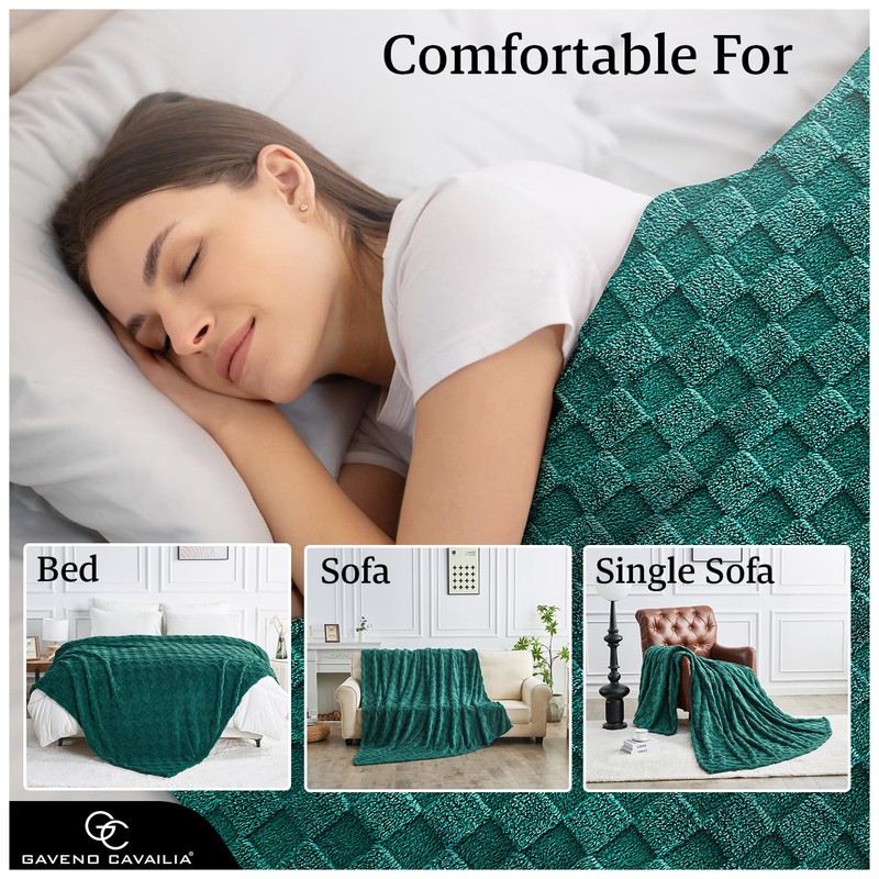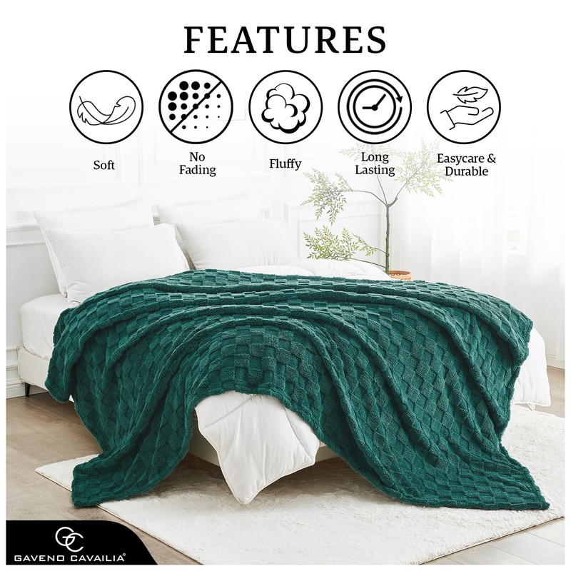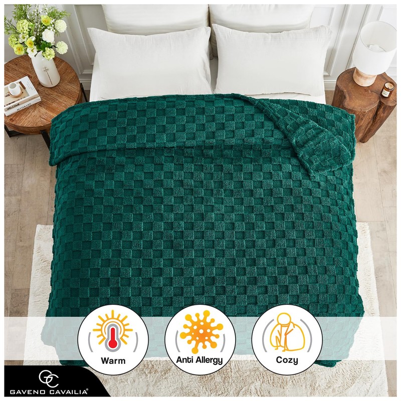GC GAVENO CAVAILIA Throw Blankets - Fluffy Fleece Blankets For Bed, Couch, Sofa, Settee - Comfortable Thermal, Warm, Cosy Blankets & Throws - Stylish Jacquard Throw (130X180 cm) - Dark Green