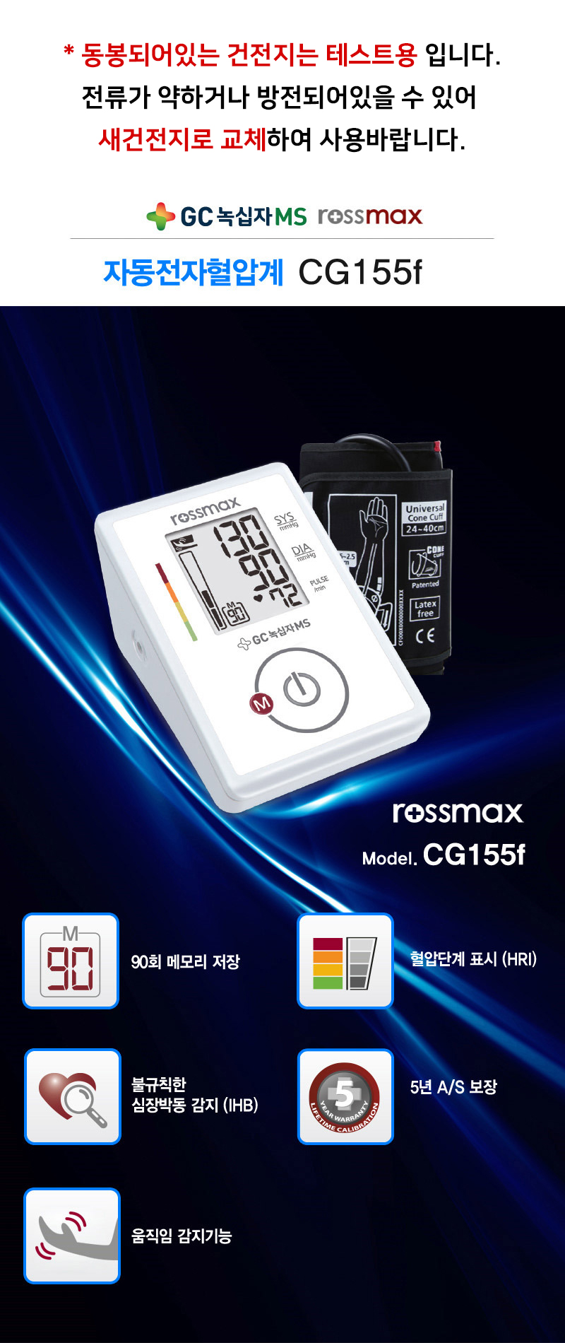 GC Green Cross Automatic Electronic Home Blood Pressure Monitor Sphygmomanometer CG155F / GC녹십자 자동 전자 가정용 혈압측정기 혈압계 CG155F