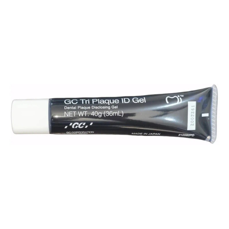 GC Tri Plaque ID Gel es un producto innovador para identificar placa bacteriana en tres colores: la nueva placa será color rosa, la placa madura será color purpura/azul obscuro y las biocapas producidas por acido serán de color azul ligero. Es una prueba dinámica aplicada en consultorio que ayuda a educar los pacientes en placa remanente en los dientes aun después de cepillar. GC Tri Plaque ID Gel permite visualizar fácilmente las áreas en las que deben concentrarse y mejorar su rutina diaria de cepillado y uso de hilo dental.