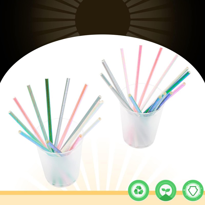 Gcardist 100pcs Iridescent Paper Straws for Drinking Disposable Sraws Disposable Straws Bulk(5 Color Muli)