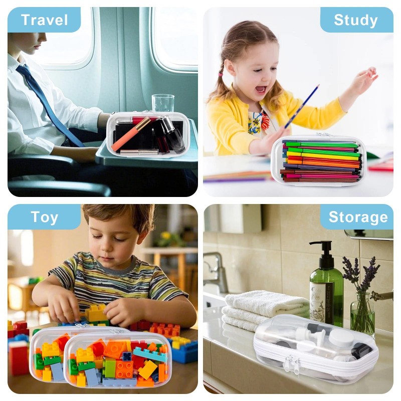 Clear Hard Shell Zipper Case: The size of these clear storage box set with zipper is approximately 7.9 x 4.7 x 2.0 inches. The package includes 4 hard zipper cases, which will give you enough space to store and organize multiple items, making the messy environment clean and tidy
