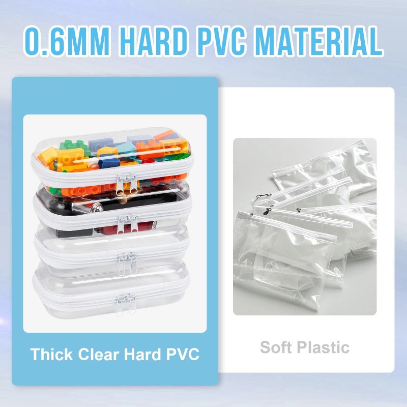 Double Zipper Design: The clear zipper pouches hard shell features a double zipper design for easy opening and closing, ensuring the safe storage of your items while protecting them from dust and dirt