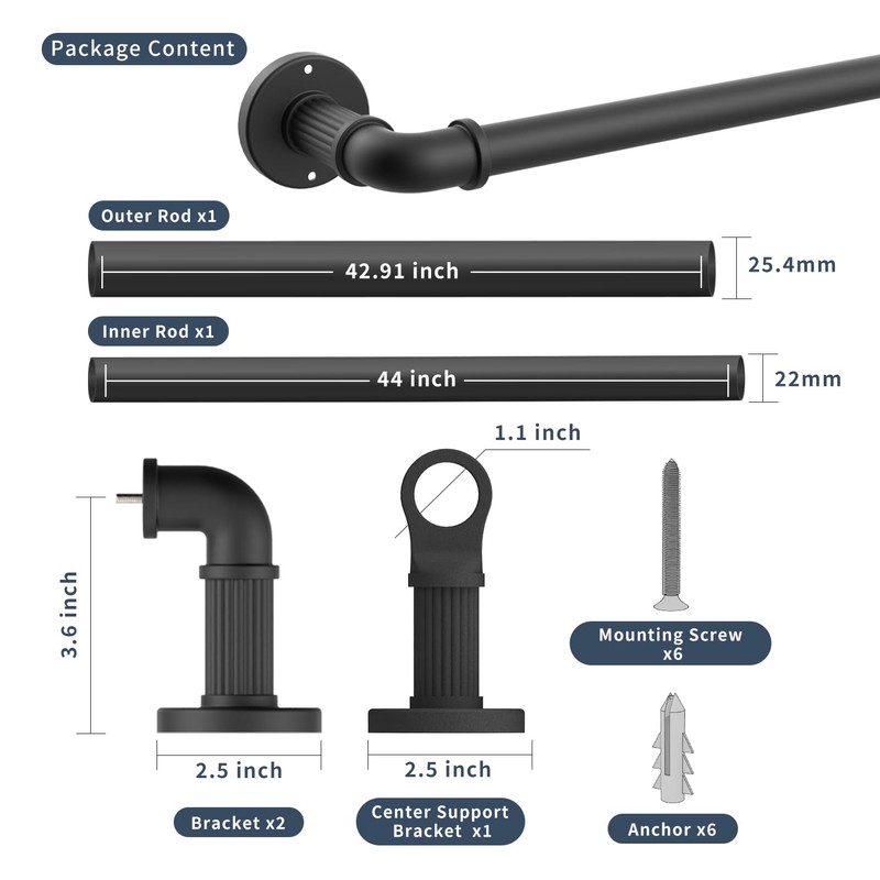 - Stylish Industrial Design: Add a dash of modern industrial aesthetics to your window décor with our black-finished decorative curtain rods. The design flawlessly combines contemporary and industrial styles, complementing various window treatments.
