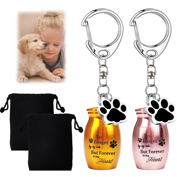 GCVOPTON 2 Pcs Pet Urns Keychain, Stainless Steel Cat Ashes Urn, Small Pet Urns for Dogs Ashes Keepsake, Pet Dog Cat Cremation Jewelry Pend Paw Print Memorial Urn with 2 Black Velvet Storage Bags