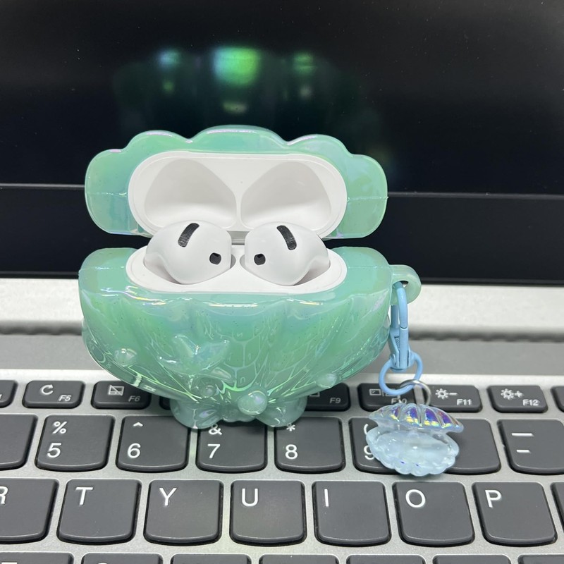 GCVXRUD for Airpods 4 Case, Beautiful Interesting Creative Glitter 3D Seashell Headphone Protective Shell for AirPods 4 Earphone Cover for Girls Women (Green,Shell Pendant)