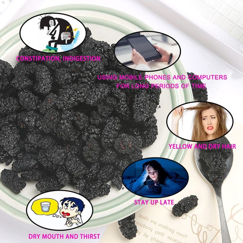 - 【Preferred Raw Materials】:Select high-quality wild black mulberry, sun-dried, each mulberry dry black transparent, full particles.