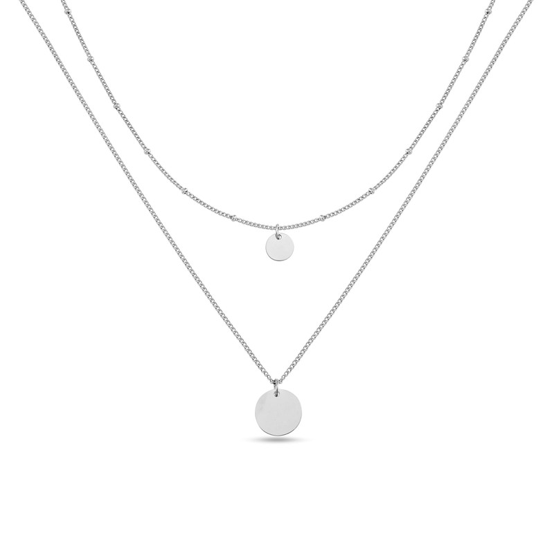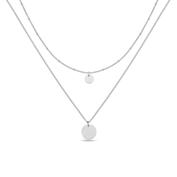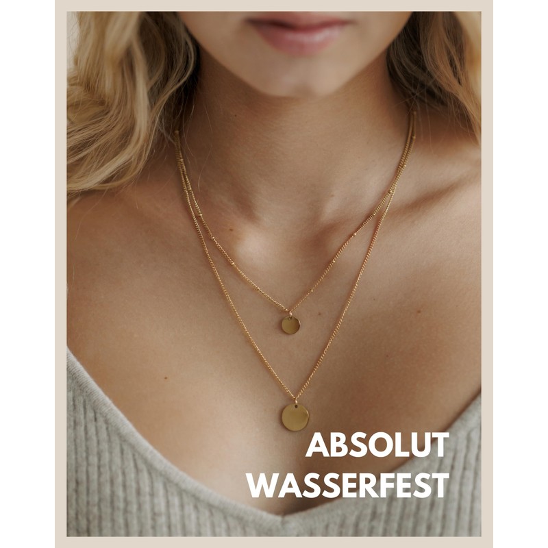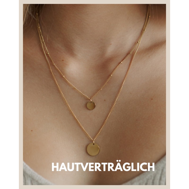 GD GOOD.designs Double Chain for Women with Platelets - Waterproof Coin Necklace Double Row in Gold, Silver or Rose Gold I Layered Plate Chain Made of Stainless Steel, Stainless Steel