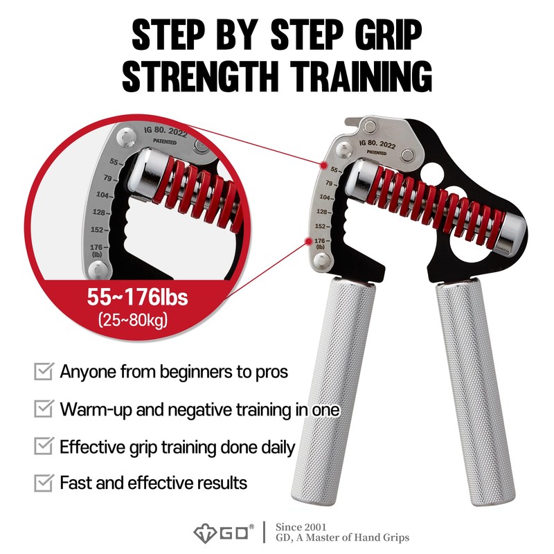 GD GRIP Fingerhantel Iron 8 Hand Trainingsgerät Einstellbarer Widerstand 25 bis 80 kg Handtrainer Griffkraft - Unterarmtrainer