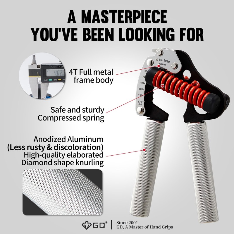 - Made with Aluminum handles, Strong compressing spring, 5T iron. GD IRON GRIP 80 Light will be never broken even you work out with it more than 10 years.
