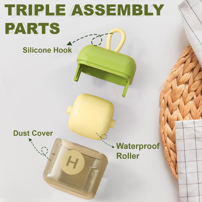 - Practical design: the lint roller consists of essentially three parts: a silicone hook, a waterproof roller and a dust cover. The hook design makes the lint roller easy and space-saving to hang on the wall. The dust cover can prevent dust from sticking during storage, which makes it easier for next use