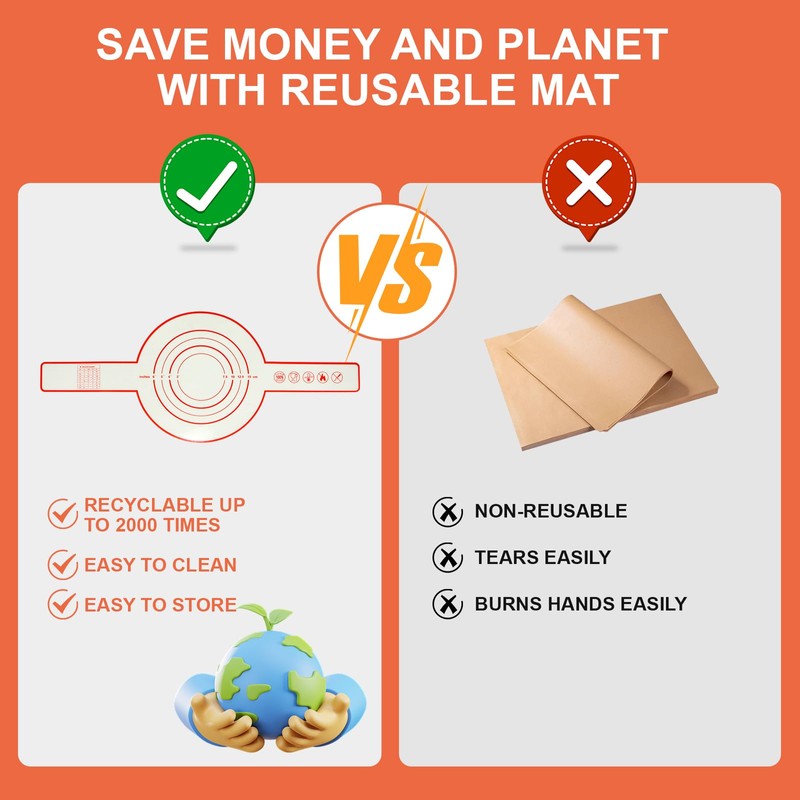 - REUSABLE & SAVE MONEY: Parchment paper is expensive and has to be thrown away after each use, but a bread baking liner is a reusable and eco-friendly alternative. A bread mat can reusable thousands times. Tough and reliable.