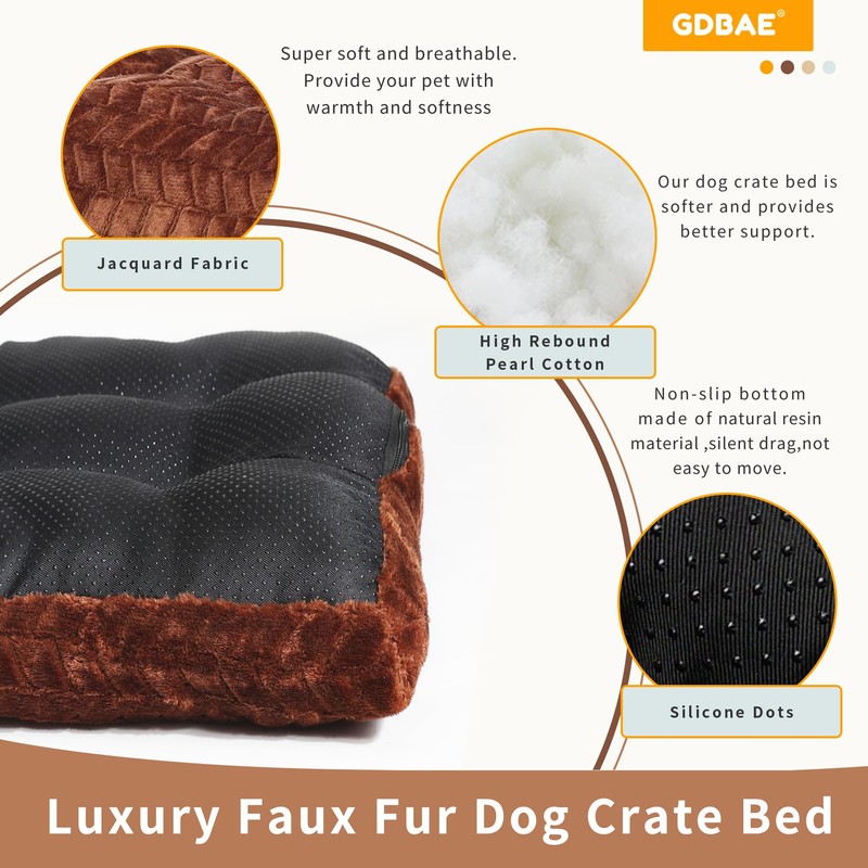 • Luxury Faux Fur Dog Crate Bed:Our crate dog beds are made of high quality jacquard flannel fabric to provide a soft, comfortable and warm sleeping surface for pets. Internally filled 15D high rebound pearl cotton provides excellent support and rebound effect. The bottom has a non-slip design that adapts to the curve of the pet's body, providing them with a soft, warm and comfortable sleep experience.
