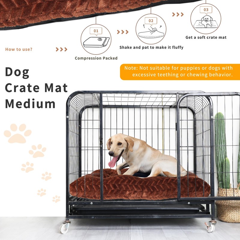 • Dog Crate Mat Medium:Our medium sized dog crate beds feature six fixed points for increased stability and support, reducing stress and providing a more comfortable resting environment for pets. The coffee-colored jacquard fabric has a delicate texture that adds beauty to the 35-inch dog crate mat. Its simple and elegant design makes it the perfect match for your home decor.