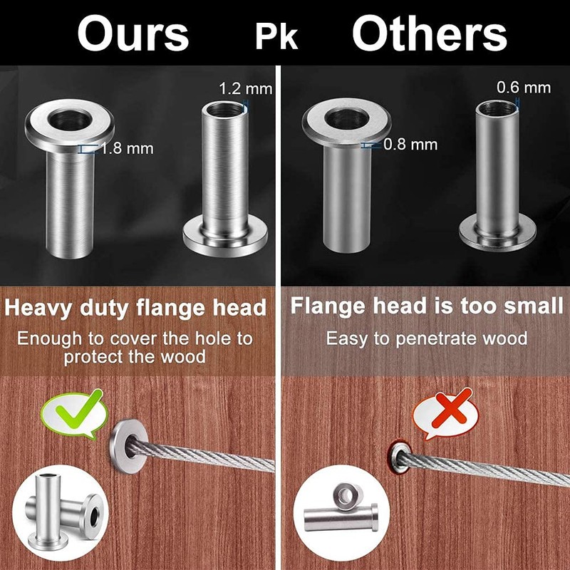 - 【Size】:Suitable for 1/8"cable railing.Overall length of sleeve=0.787",sleeve diameter=0.25", flange diameter=0.51",drill bit diameter: 6.5mm.