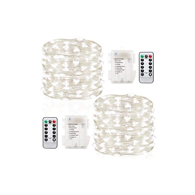 GDEALER 2 Pack Fairy Lights Christmas Decor 20 Ft 60 Led Battery Operated Christmas Lights with Remote Waterproof Twinkle Lights 8 Modes Fairy String Lights for Party Bedroom Wedding Decorations-White
