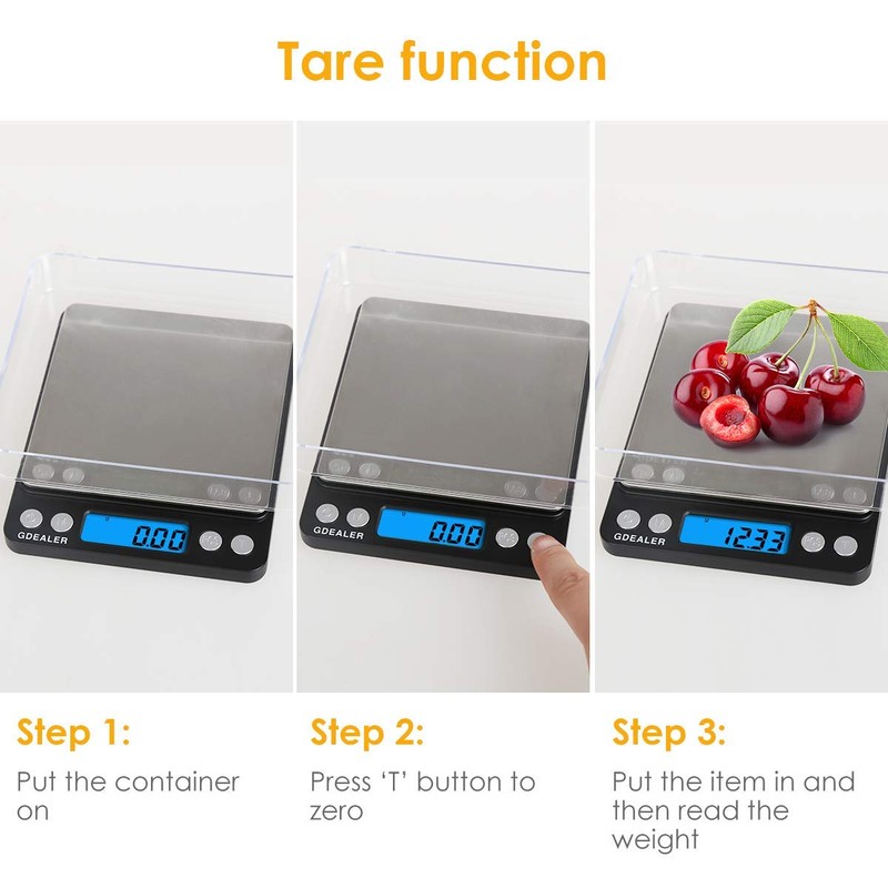 - Precisión: esta báscula GDEALER equipada con sensor de gravedad de alta sensibilidad y amplio rango, pesa hasta 500 g. Lecturas en unidades: g/ct/dwt/ozt/oz/gn. Nota: Peso inferior a 3 g puede disminuir la precisión de la báscula