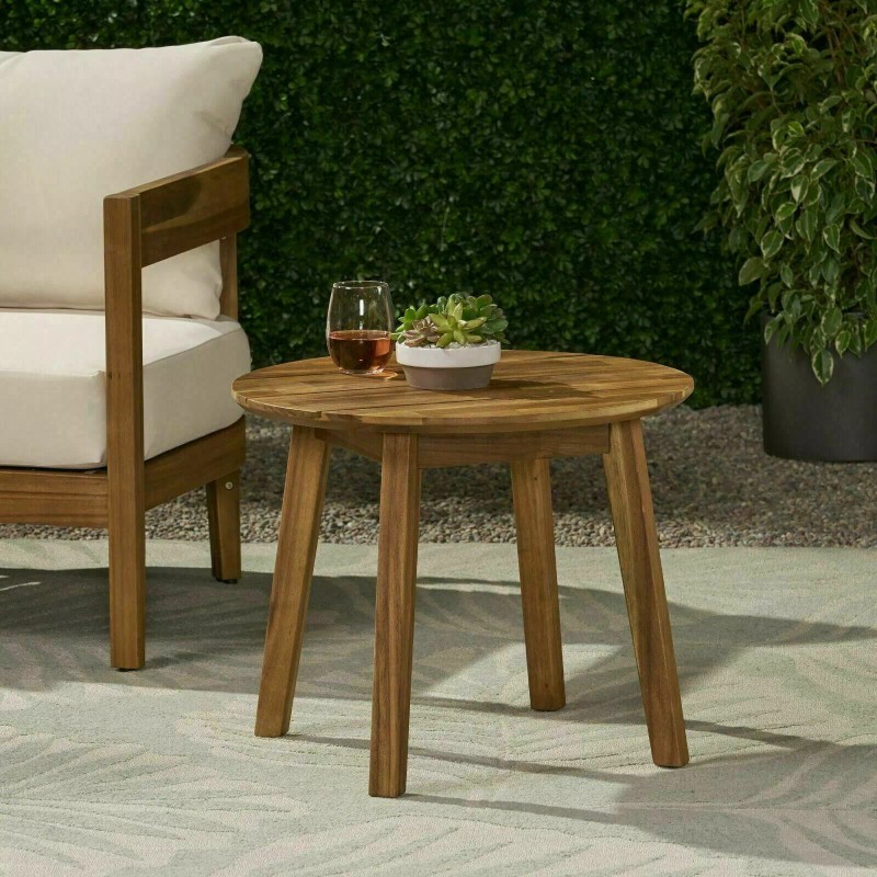 GDFStudio Outdoor Acacia Wood Circular Side Table, Teak