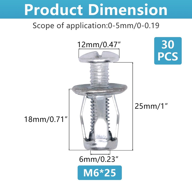 GDFYMI Metal Hollow Door Anchors, Hollow Wall Anchors for Plastic Sheet, Aluminium Cladding Sheet, Steel Pipe, Iron Sheet, M6*25, 30pcs