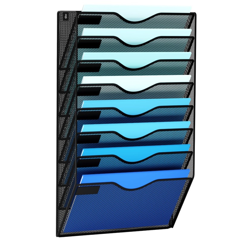 - 8 Pockets: The wall file organizer comes with mounting screws that can be easily mounted on the wall. Taking full advantage of your vertical space and keep your desk clean.