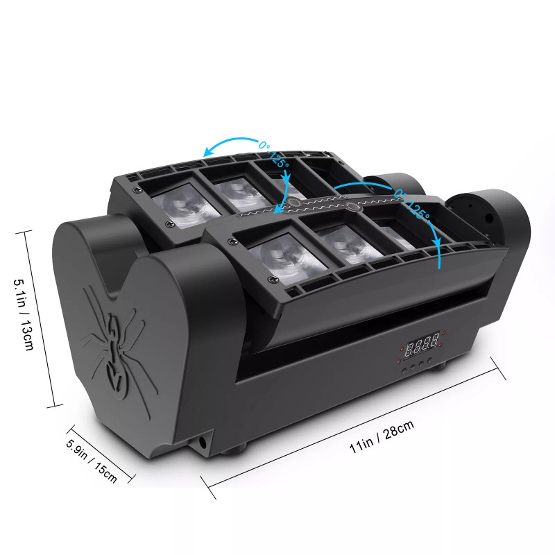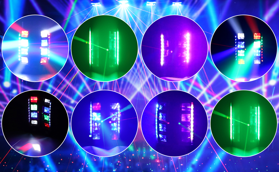 Light source: 8 * 10W RGBW lamp beads; 24pcs high-brightness pixel light strips * 2; one red laser, one green laser,