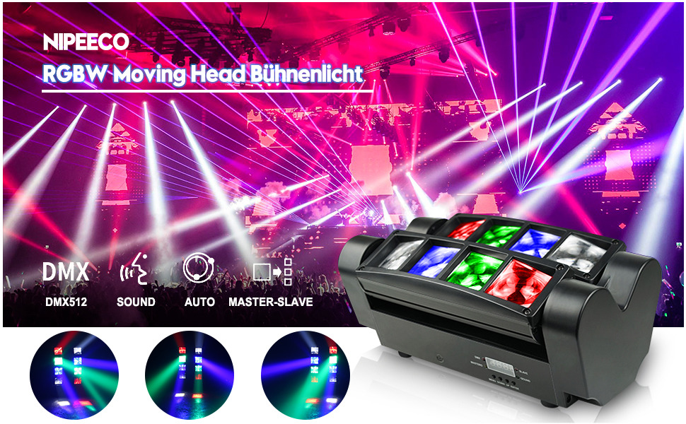 GdjRttk Halloween 8LED RGBW Laser Beam Moving Head Stage Lighting DMX Party Disco Light
