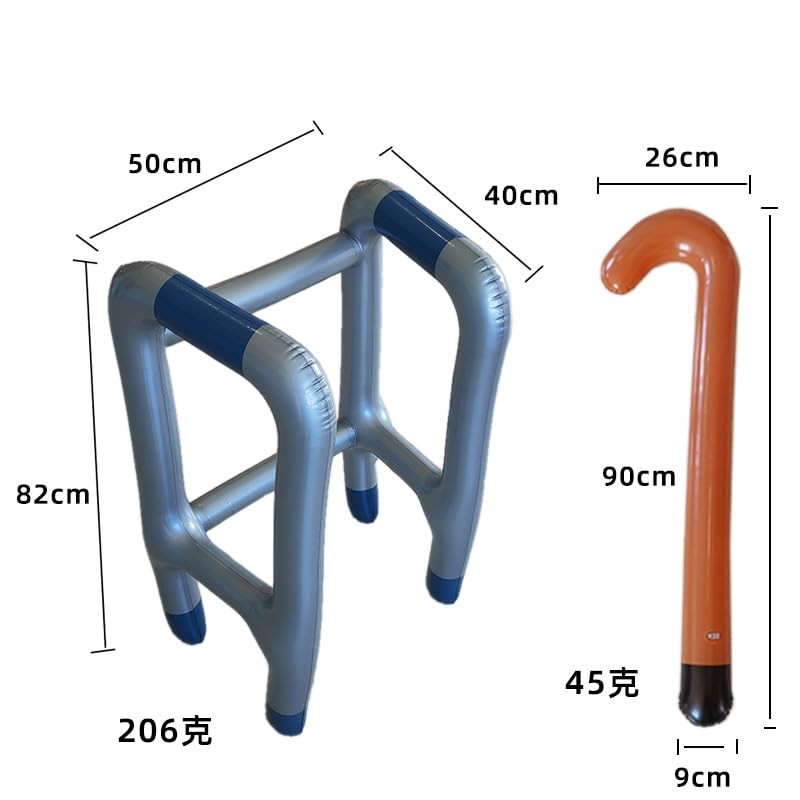 - Inflatable walking aids can add a humorous atmosphere during holidays, such as Christmas, Halloween, birthday parties, concerts, event gatherings, etc., bringing you a lot of happiness. They can also be given as gifts to friends and family